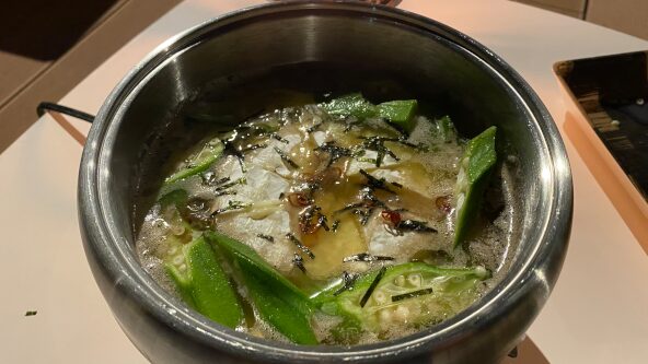 カマンベールのコク、オクラのねばりが混ざり合って、