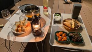 「これ、海辺じゃなくて庭で食べてるのが信じられないな」と思わず独り言。