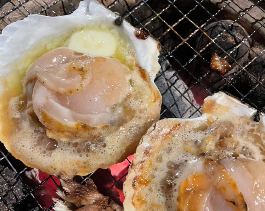 ホタテの濃厚なスープのような汁、イカの香ばしい香り、どちらも炭火の魔法でワンランク上の味わいに変わっていた。